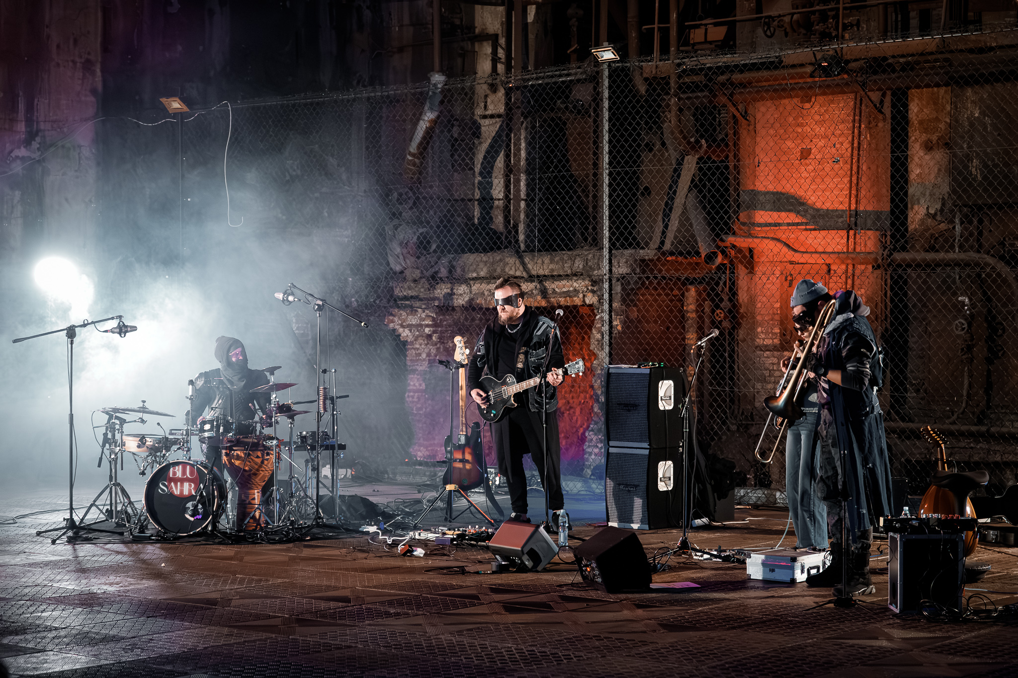 BLU SAHRA to opowieść spleciona z dwóch słów — echo przestrzeni i snu. Przestrzeń poza czasem, gdzie rdzewieją ruiny, niebo pulsuje częstotliwością, a muzyka budzi się z pyłu. BLU symbolizuje głęboki błękit zmierzchu, sygnał nadawany z oddali, puls i ciszę przed pierwszym dźwiękiem — migotanie między światami. SAHRA pochodzi z arabskiego ṣaḥrā’ (صحراء), oznaczającego pustynię — miejsce, gdzie czas się rozciąga, każdy krok zostawia ślad w piasku, a wiatr niesie dawne pieśni.